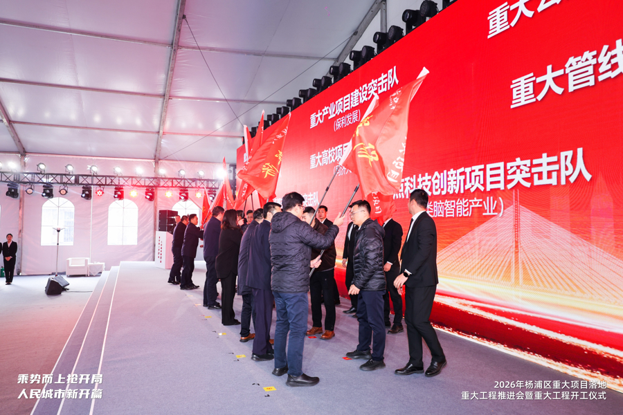1月4日,2026年杨浦区重大项目落地、重大工程推进会暨重大工程开工仪式在上海量子城市时空创新基地一期工程建设广场举行。